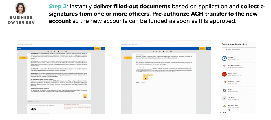 End-to-End Digital Application – A fully online account opening process that business owners can complete remotely, from initial application to final signature, without paper or branch visits.